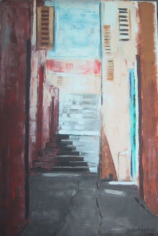 Expressive rendering of the 'Alley of Steps in Otrobanda'.